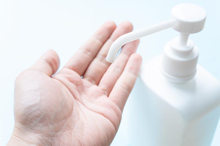 院内にアルコール洗浄液を設置しておりますので、手指の消毒をお願いします。